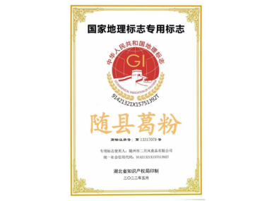 隨縣葛粉地理標(biāo)志證書